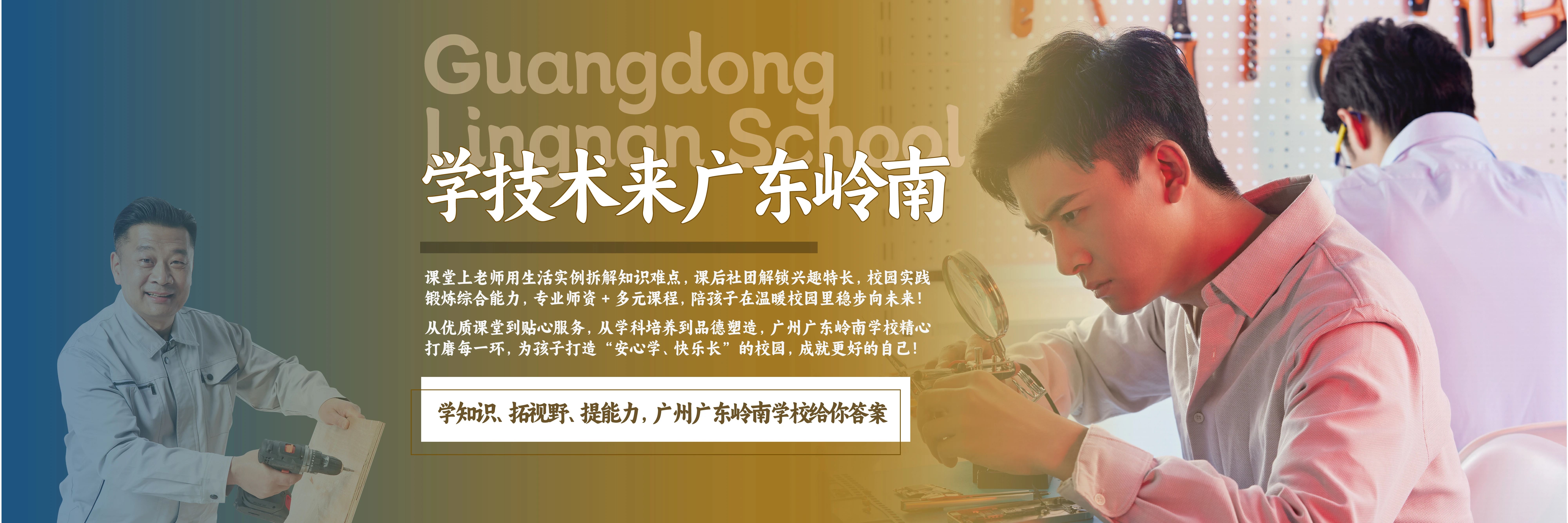 广东岭南现代技师学院创办于2005年6月,是经广东省人力资源批准设立的全日制技师学院,也是广州岭南教育集团重点发展的职业教育院校。学院集技工教育、职业培训、技能评价等于一体,致力于培养高素质技能人才。学院坚持以服务社会为宗旨,以就业创业为导向,注重学生能力培养,为社会输送了大量优秀人才,并多次荣获殊荣。学院以“产教融合、校企合作”为办学模式,累计为社会培养输送了30000多高技能人才,多次荣获“中国职工教育和职业培训协会优秀科研单位”等荣誉。