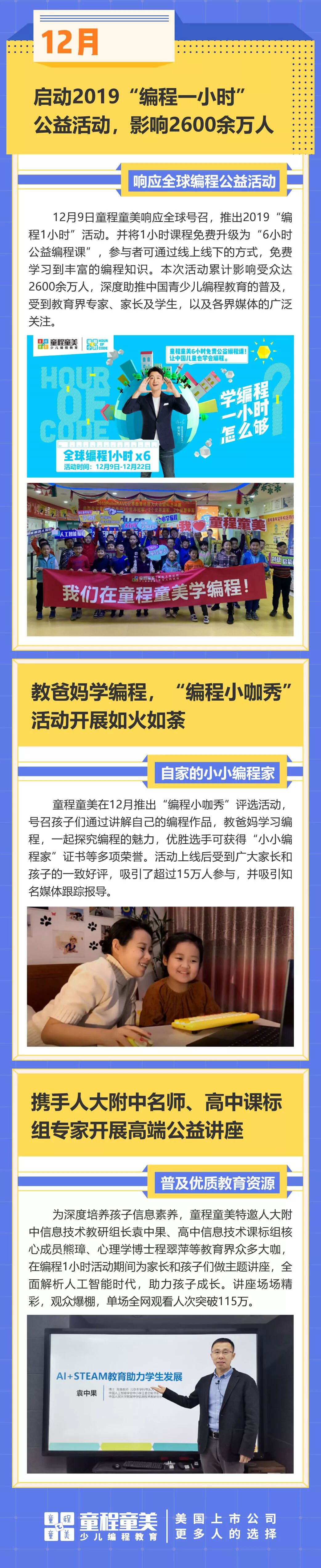 2019,从感动中开始,在感动中结束这一年,更多家长和孩子选择了他们在这里学编程、看世界、圆梦想、拿冠军衷心的感谢您在这一年里对的支持2020,我们仍将与您一起成就孩子更美好的未来!