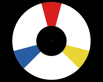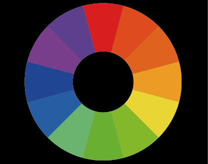 十二色相环:是由一次色即原色和二次色、三次色组合而成的十二色色相环。